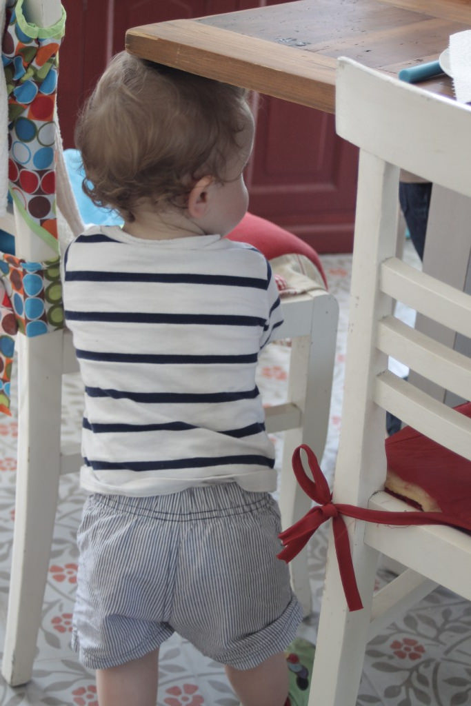Le second est son aîné de 3 mois et demi. Ils font approximativement la même taille, mais le plus âgé des deux bénéficie d'une motricité un peu plus affinée que la nôtre, et d'un entraînement para casse-pieds lié à l'existence d'un jeune grand frère. Pour autant, quand le mini géant blond qui est mon fils s'est précipité vers lui de sa démarche débutante pour lui arracher sa tototte et la mettre triomphalement dans sa bouche, il y a eu pleurs. Beaucoup et bruyants. (Ok il se réveillait de la sieste, ça n'a pas aidé.)