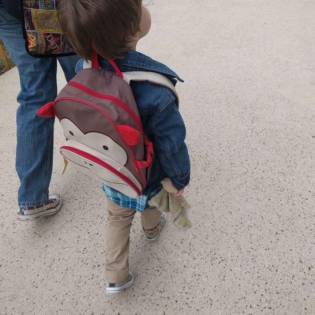 Sourire lumineux du gamin, déjà dans la classe sans un regard en arrière.