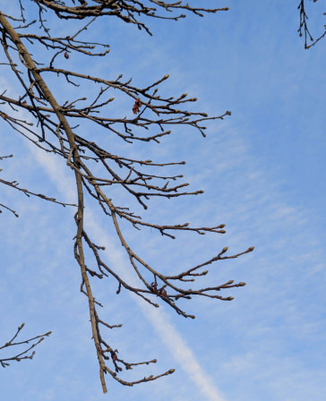 Des bourgeons sur le grand machin juste devant l'entrée du marché ! Du ciel bleu !