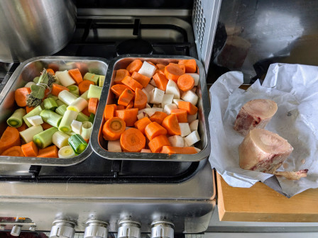 Car, oui, rentrée, j'ai lancé la cuisson du pot-au-feu, enfourné le poulet, préparé la pâte pour les gaufres de demain matin. Efficace, concentrée, couteau aiguisé, ça me permet d'avoir tout le temps qu'il faut pour ramasser le contenu d'une boîte de poivre que j'ai laissée échapper de mes mains. L'organisation, c'est un métier, comme j'aime à le répéter. Ca sert à dégager du temps pour réparer ses conneries.